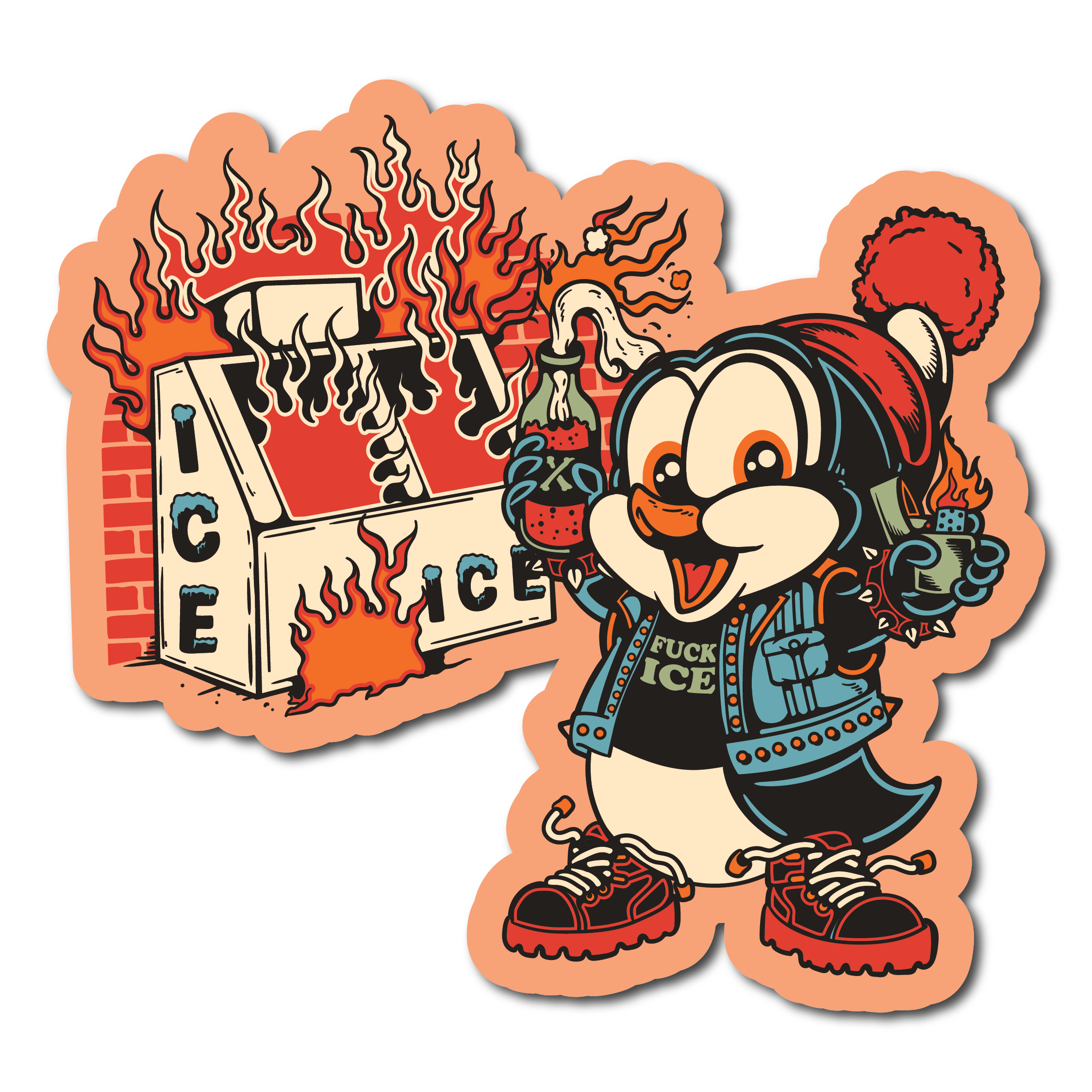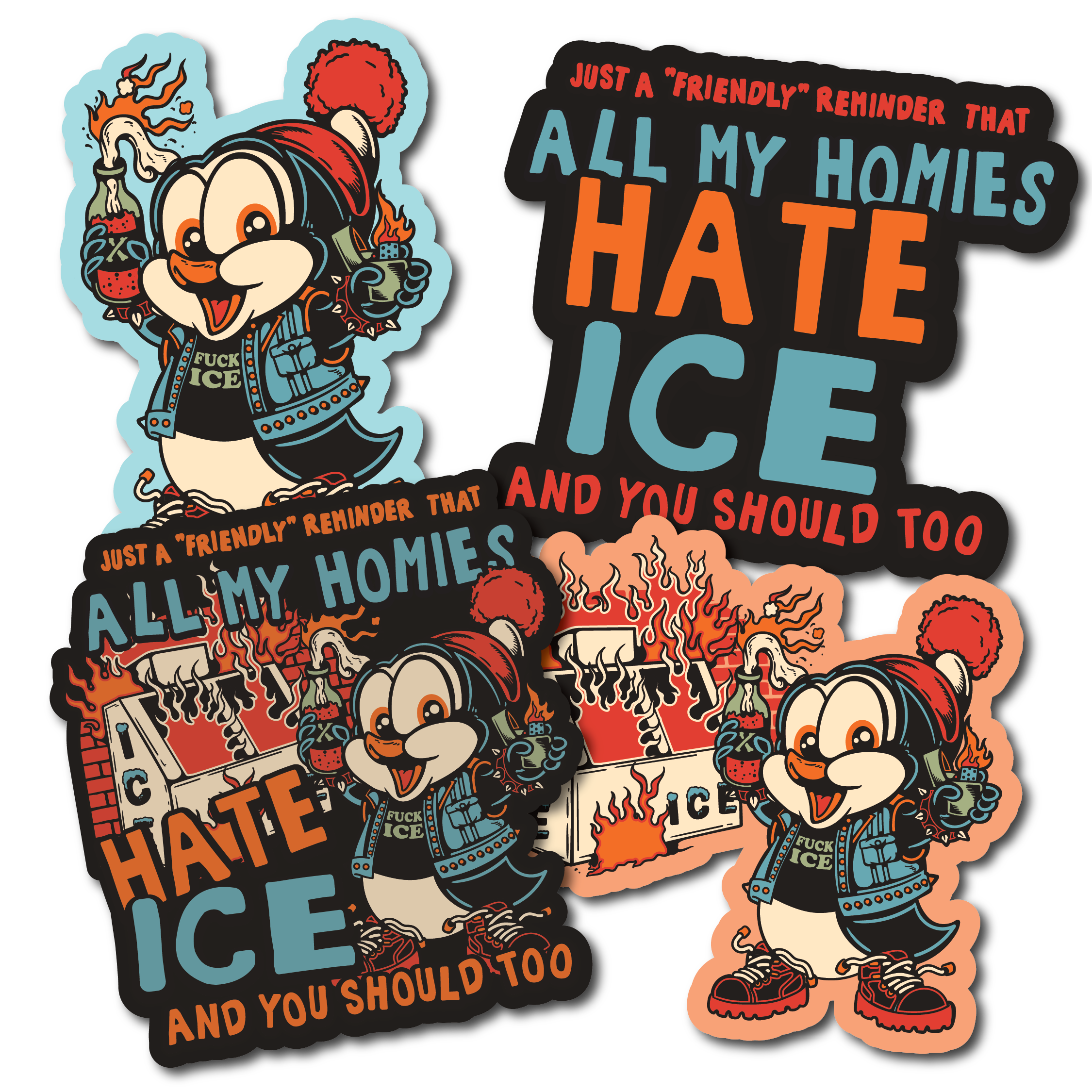 4 cool stickers showing off our love of cool art, and HATE for I.C.E